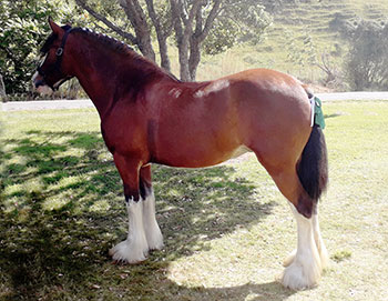 Jade has a relaxed nature, she is good to catch, ride, cover, shoe and float. Jade won the New Zealand Clydesdale Championships in 2024